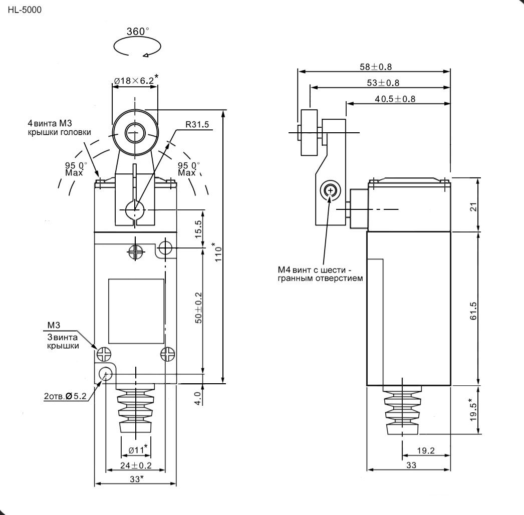 | Тип | выключатель путевой c поворотным рычажным роликом (PTmax=20 град.) |
