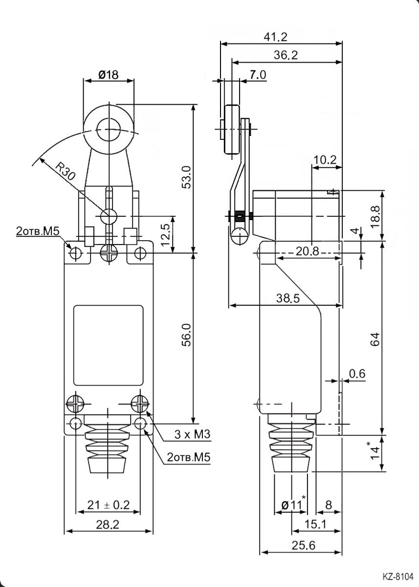 | Тип | путевой выключатель с поворотным рычажным роликом (PTmax=20 град.) |