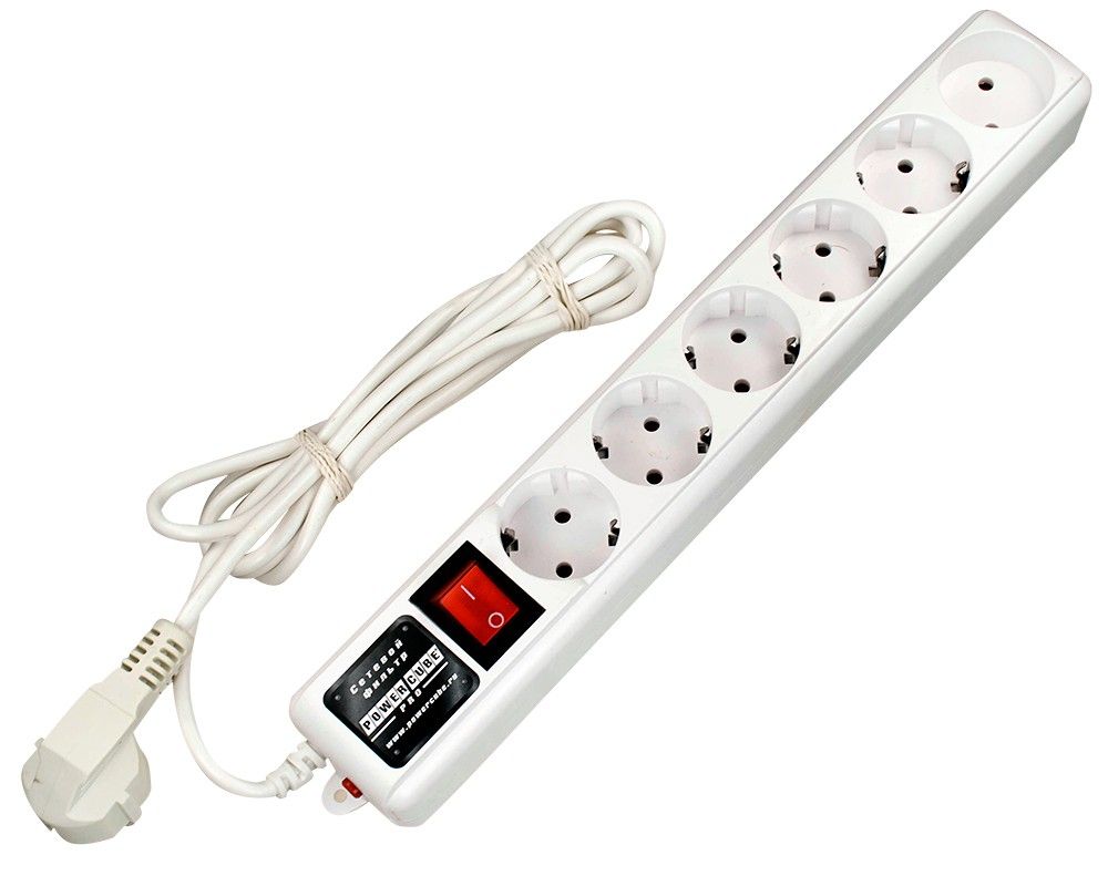 SPL(5+1)-B-6 WHITE, Сетевой фильтр Power Cube Pro, 1.95м, белый, защ. шторки