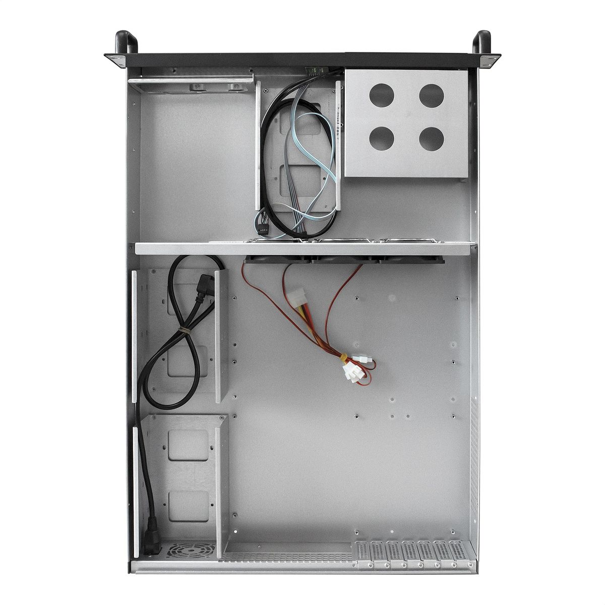 Места для установки дополнительных вентиляторов: 1 x 8 см (в перегородке), 1 x 8 см (на задней стенке)