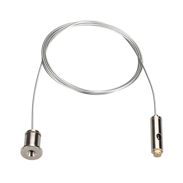 Крепёжный набор, применяется для подвесного монтажа, устанавливается в узкий паз профиля. В комплекте втулка в узкий паз, тросик 1 м., потолочное крепление (кронштейн). Шуруп в комплект не входит, т.к