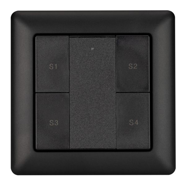 Встраиваемая кнопочная черная пластиковая панель для работы по протоколу DALI. Может устанавливаться как в дополнение к диммирующей панели, так и автономно,для вызова ранее сохраненных сцен в 1 группе управления