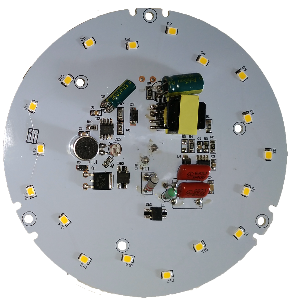 Светодиодный модуль круглый; 9Вт; 18 светодиодов; с микрофоном; подключение клеммниками